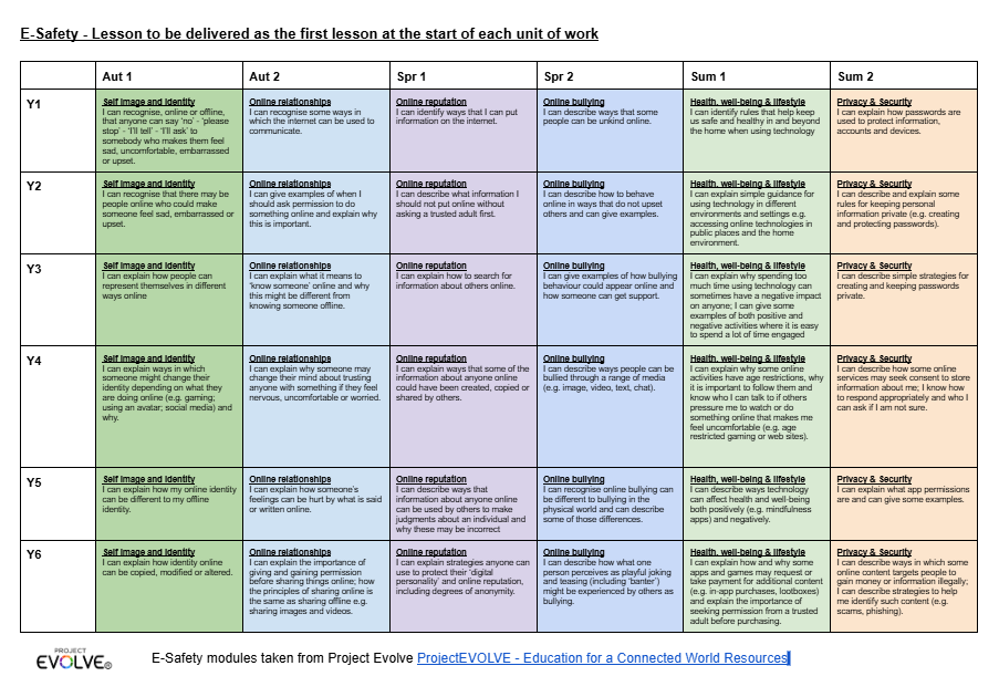 • Across the Key Stages and within each unit, our pupils have the opportunity to revisit the knowledge and key skills learnt. Each topic delivered is split into 3 parts: e-safety, digital literacy and coding. This aids retention, builds on prior knowledge and embeds all of the key skills taught. Pupils are equipped to use information technology to create programs, systems and a range of content, become digitally literate – able to use, and express themselves and develop their ideas through information and communication technology – at a level suitable for the future workplace and as active participants in a digital world.